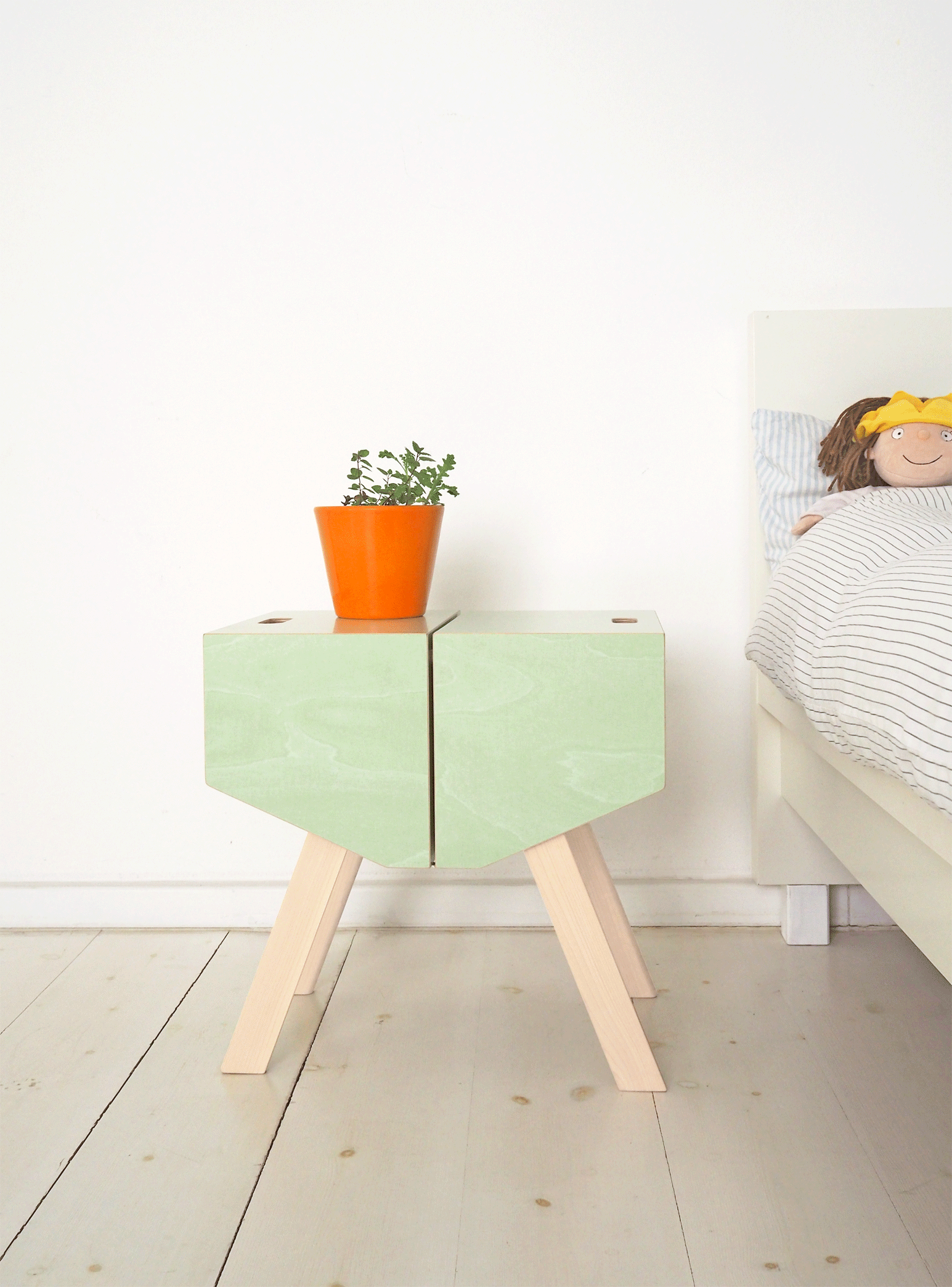 Als Einzelstück oder in Kombination lässt Flip viel Spielraum für Kreativität und lädt zum Experimentieren ein. Der Wechsel zwischen Tisch, Hocker und Kiste ist dank der praktischen Grifflöcher und dem intuitiven Mechanismus ein Kinderspiel. Naturbelassenes Holz in Verbindung mit schönen Farben machen Flip außerdem zu einem echten Hingucker.